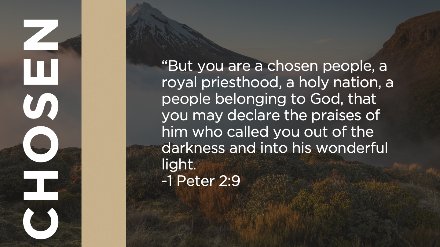 “But you are a chosen people, a royal priesthood, a holy nation, a people belonging to God, that you may declare the praises of Him who called you out of darkness into His wonderful light.”