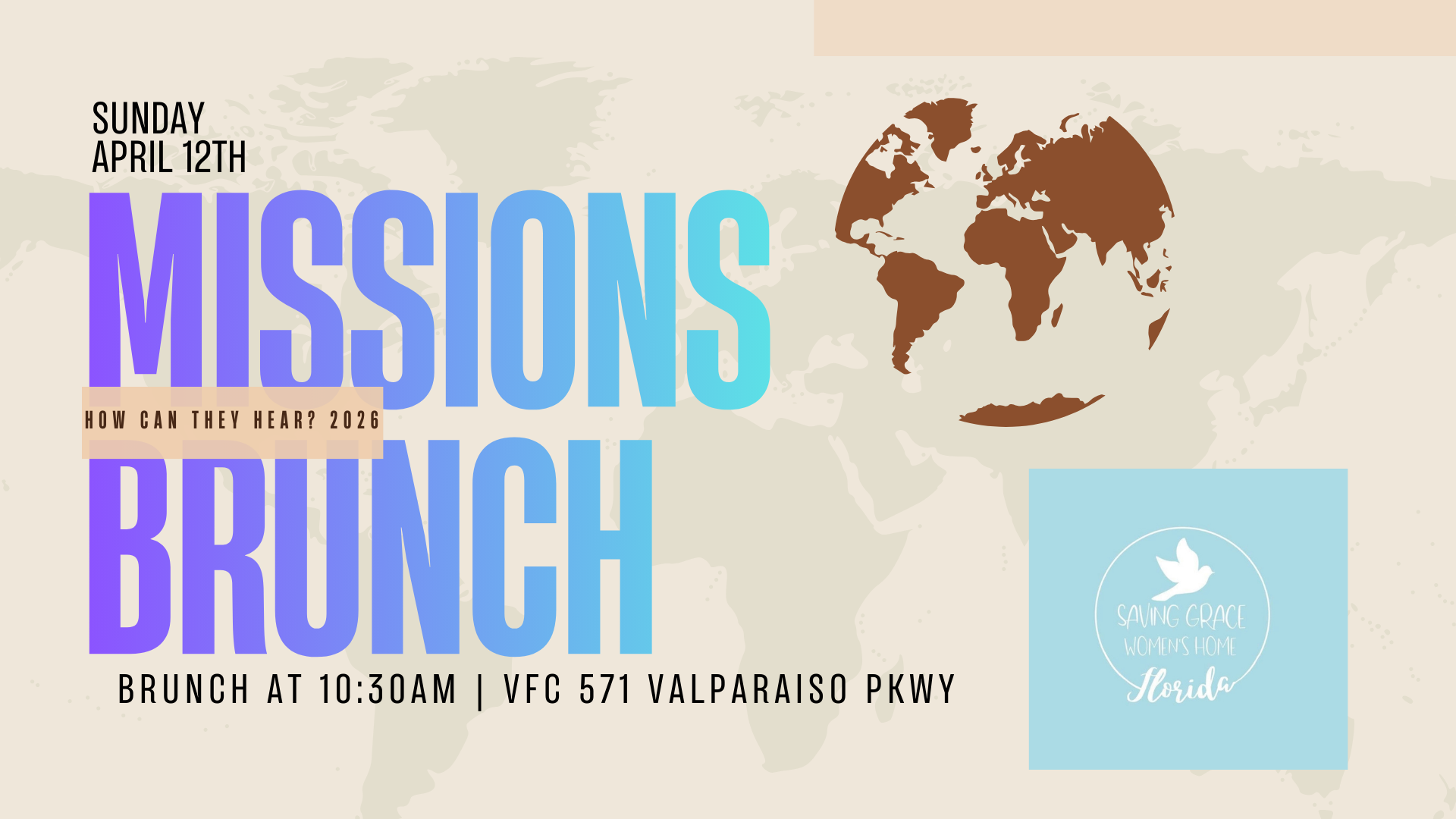 Join us for our Missions Brunch. Begin your day with a special breakfast-at-church experience as we gather to hear inspiring testimonies from Saving Grace, a Christ-centered program helping rescue women from addiction, abuse, and homelessness through a one-year discipleship journey. Discover the incredible ways God's love and power are changing lives around the world. This event offers a unique opportunity to ask God how we can contribute to missions by renewing or starting a new faith promise for 2026.